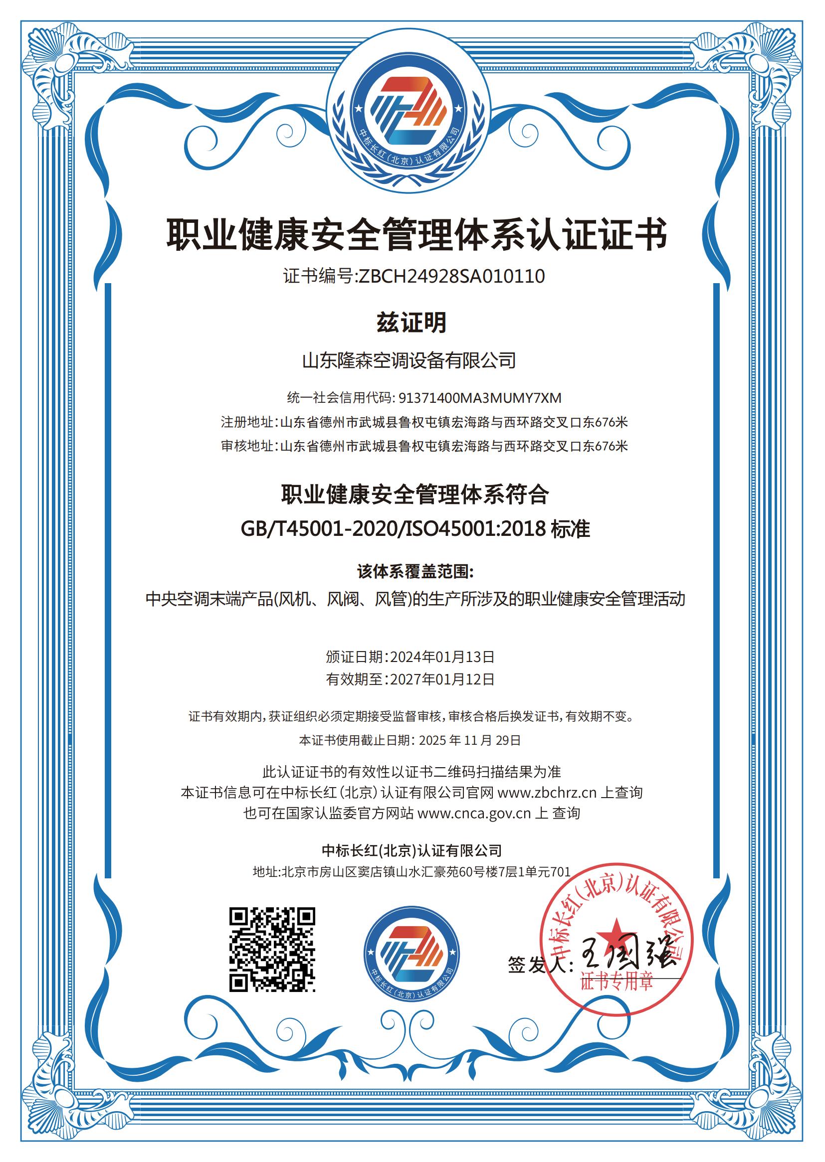 • 職業(yè)健康安全管理體系認(rèn)證證書